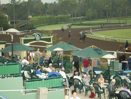 On Wednesday morning visit Clocker's Corner where many trainers and owners gather to watch the morning workouts.