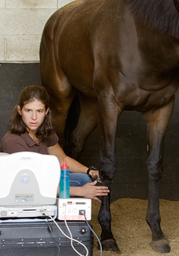 There are many ligaments in the horse’s body.  The most common ligament that can sustain an injury is the suspensory ligament.  A major component of the horse’s suspensory apparatus, this ligament in the forelimb courses from the back of the knee to the fetlock joint.  In the hindlimb the suspensory ligament runs from the lower part of the hock to the fetlock joint.  Injuries to this ligament can be anywhere along its length.  The more common injuries are seen either at its origin (proximal suspensory) or in the branches where the suspensory inserts onto the sesamoid bones.  As with most injuries in the horse, they can vary greatly in severity and thus the treatment will be determined by this severity.